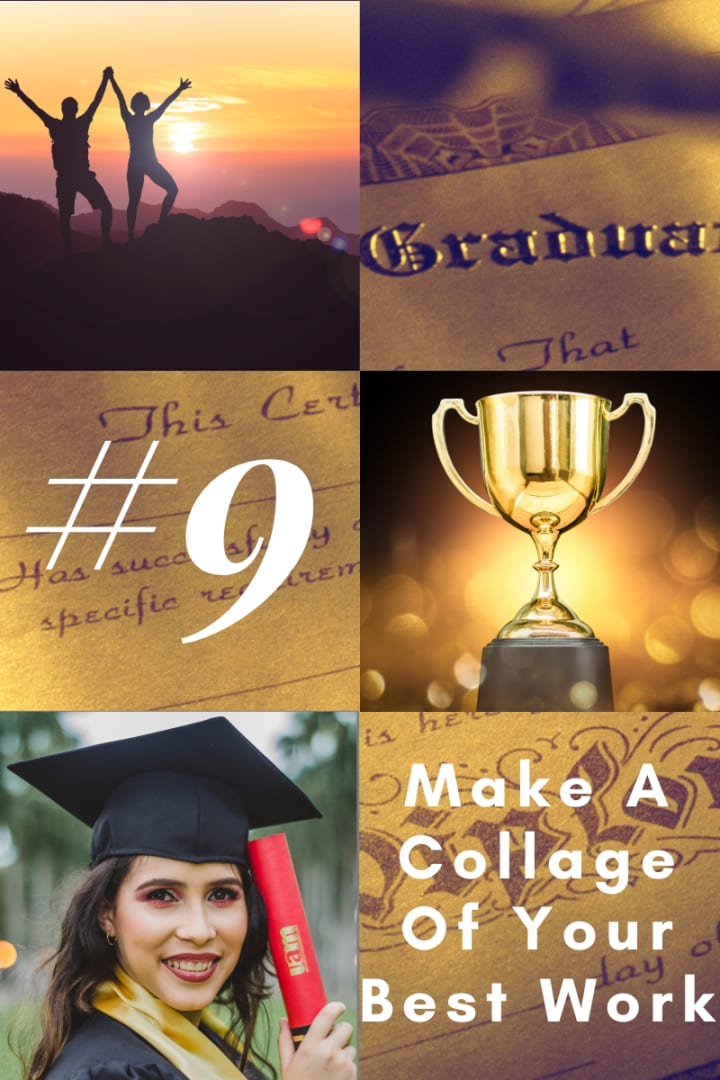 Think of something you did, that you could not wait to tell someone close to you. Got it? Good! Do you have a picture or some sort of memorabilia? If not, you can easily create one. It doesn't have to look good and you do not need to have someone know what it is when they look at it. It only needs to remind you of that moment you felt the most pride for yourself. Okay, so, now that we have your memory in mind, how do you feel? I bet you are feeling pretty good and have a little more motivation. Now, make a collage of your best moments and look at it every time you need motivation. This is a surefire way to keep positive energy and motivate you to conquer the most difficult of tasks.