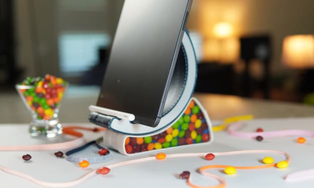 So, back to the art therapy project - the one I created for my sister. Well, at the time, I thought making a phone holder would be practical. I wanted a simple design. The kit would have no electronics and no moving parts but when assembled it should hold a phone vertically and horizontally. After assembling the kit, my sister could then customize it because it was essentially unfinished wood. I thought she could paint it similar to other art therapy projects she had completed. Well, she did more than just paint it.