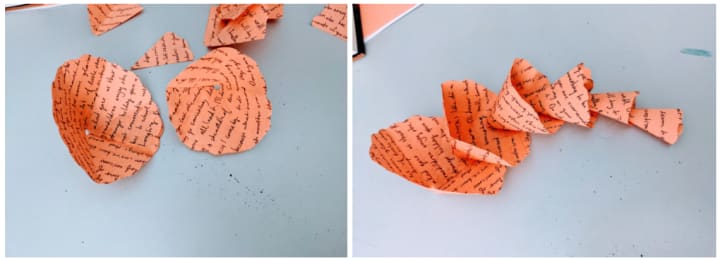 Take this origami rose, for example. Origami does not always include multiple elements, but this project involved an hour of writing elegant cursive poetry, cutting four very precise 10.5cm square pieces of paper, folding and curling intricate petals, and eventually gluing it all together. It may take some real effort for you to get accustomed to the practice of curling paper, but it is through those little details that your art will flourish.
