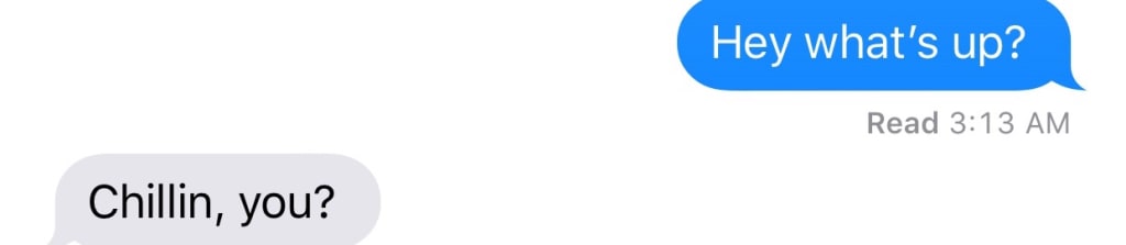 The basic conversation starters nowadays. As I get older, the probability of responding to any texts or messages consisting of those simple words is becoming slim to none. Where’s the depth? Now, I get that, depending on the person, those starters are usually and often effective. But what about what comes after? The basic “not much, wyd?” or “chillin', you?” The world these days is so warped with technology, but why? What’s so intriguing about an empty or dead-end conversation?