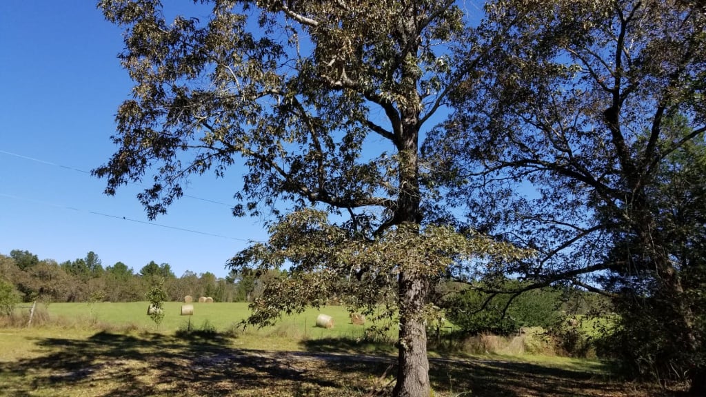 I get the deer stare for a moment and then a snort of irritation and annoyance before they quickly leap over to the shelter of overhanging tree branches from the one tree in the whole field. The tree is enormous, and as of right now, I do not know what kind it is, but you can bet I will find out. That is my next mission after experiencing this early Saturday morning expedition. For now, the name of the tree is Big-Huge.