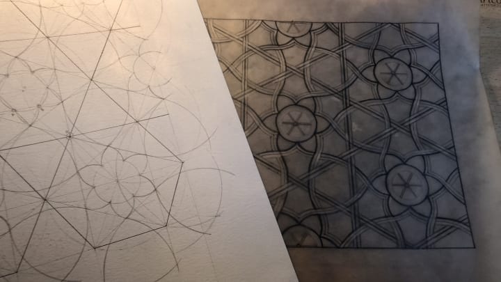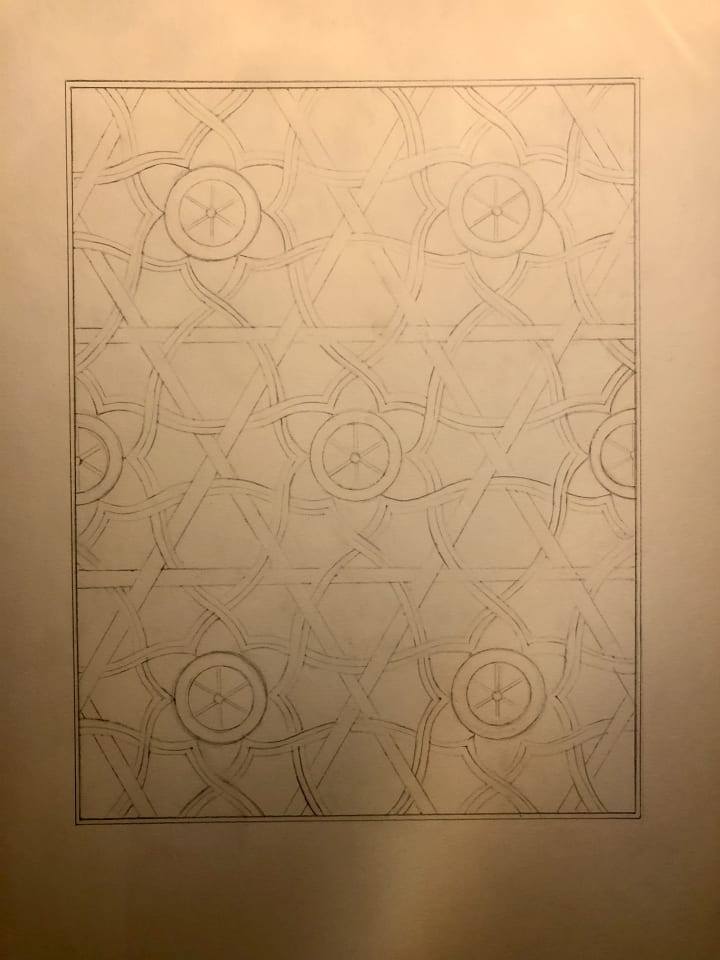 Whilst I no longer follow either religion, I still feel a sense of connection to that visit, and it is imprinted into my memory. More recently my love story with geometry has re-awoken. I found myself drawn to the designs and patterns of ancient buildings and that I wanted to re-connect with my cultural heritage. During the pandemic I turned to online classes at The Prince's Foundation School of Traditional Arts.