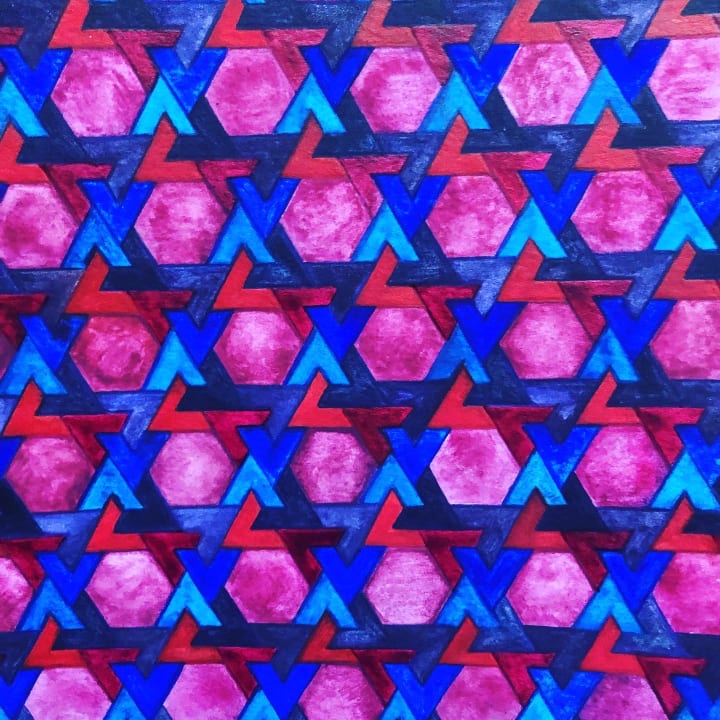 Since originally creating this writing piece, my health has deteriorated both physically and emotionally. I have struggled to find the energy and motivation to create like I once used to. Since the start of the pandemic, I have drawn and painted something at least weekly. In the weeks of absence, it has felt like a distant memory. I have had the sense of losing a friend and that a part of myself. Whilst in the throngs of illness I hope to take my art up once again. It will be waiting for me, even just to glance at pictures from geometry books and my previous work. It has been hard looking back at what I once found effortless to do. It has also been a joy to look at what I have made. I still choose to celebrate my creations and the story between me and geometry. I will come back to it again. That is sometimes how it is with projects coming to a standstill part-way through, and stories left unwritten. I realise that even with things unfinished, there is still value in all that I am. This reflection is possibly the most important part of this piece. Sometimes all we can do is nothing at all. Being present with the difficult feelings takes huge strength. Being attentive to them, even for one moment is courageous and a significant achievement.