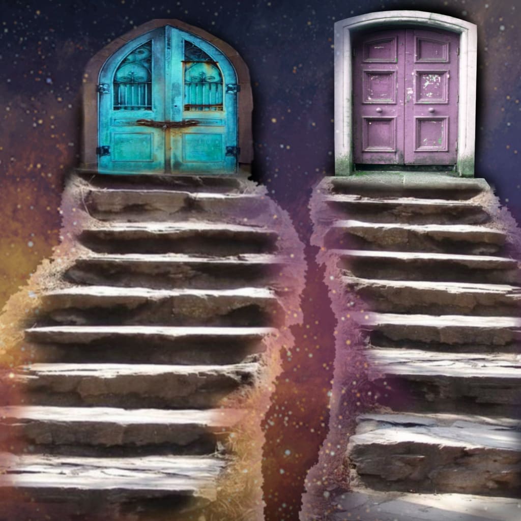 In the image above you will notice two very different doors before you. When this happens it is two very different opportunities presenting themselves to you. One could be a higher road leading to your highest greater good filled with many new and different types of lessons. While the other is a lower road filled with the same lessons on repeat just harder because you didn't learn from them the last time around. This is when you are to ask the UNIVERSE to lead you to your paths that lead you to your highest greater good for your soul.