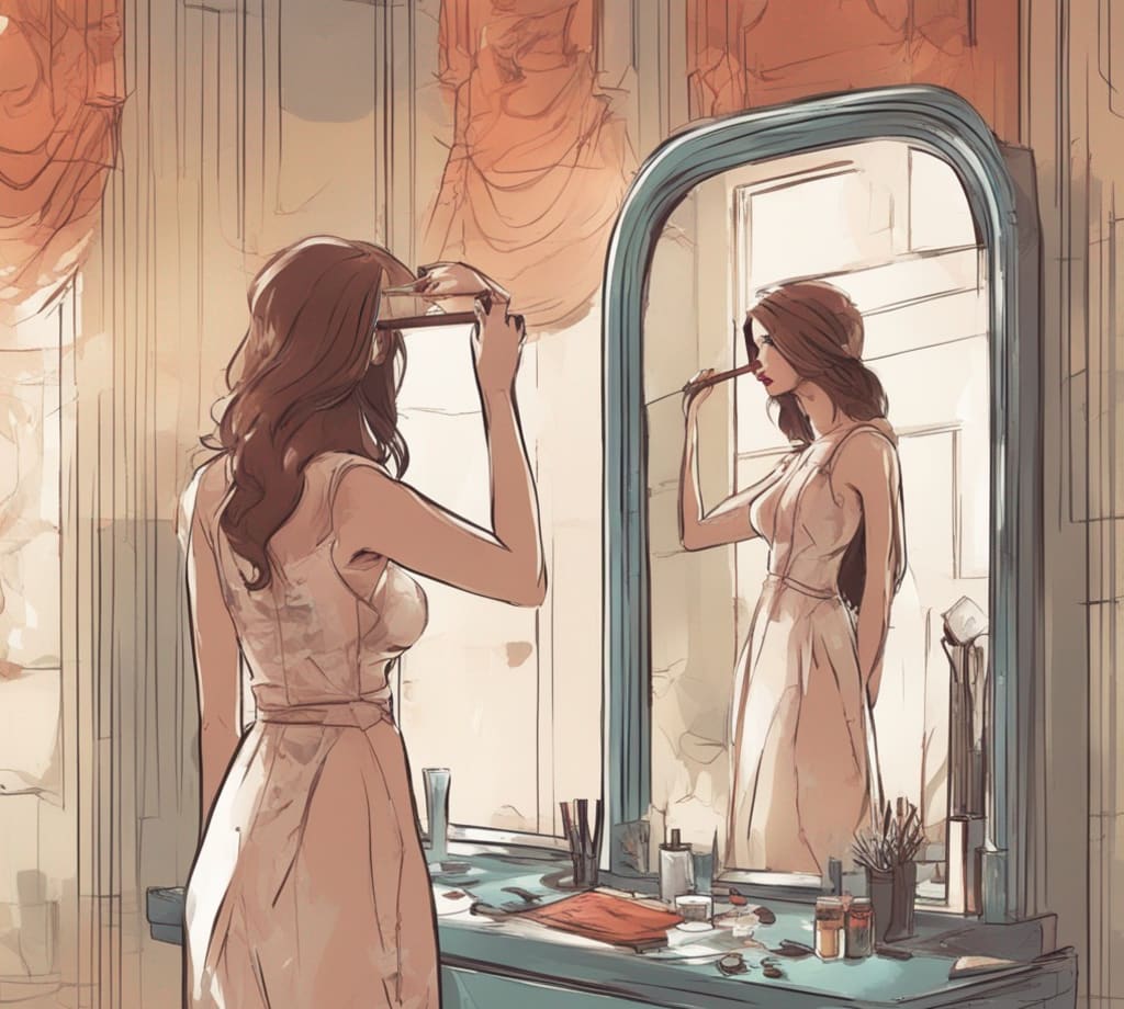 One radiant morning, as Elena was walking around a recreation area, she saw an old, puzzling mirror concealed under an overhang of sprouting cherry blooms. Interest provoked, she looked into the mirror, hoping to see her own appearance. Nonetheless, what she saw shocked her - a variant of herself gleaming with certainty, satisfaction, and a lively emanation.