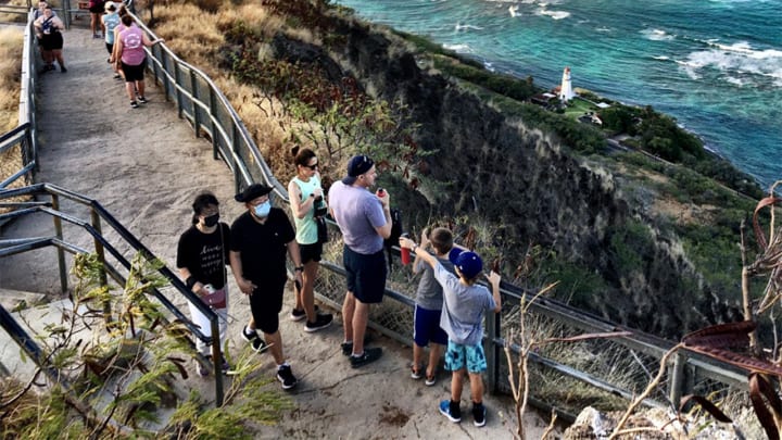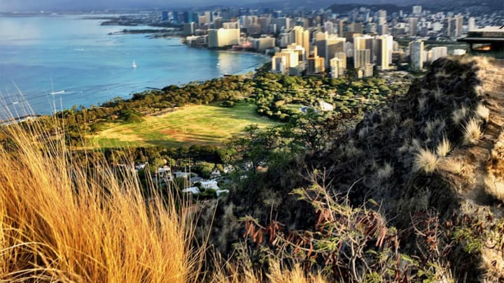 The iconic Diamond Head is perhaps one of Hawaii’s most famous landmarks. This 760-foot tuff volcanic crater is also a popular hiking trail.