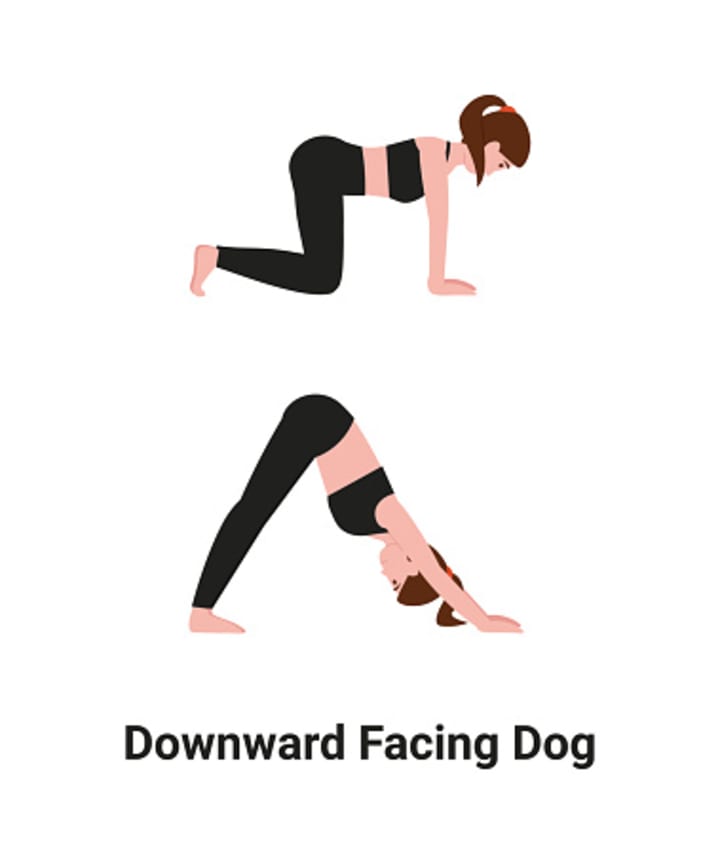 Downward-Facing Dog (Adho Mukha Svanasana): This pose is a great way to stretch your back, shoulders, and hamstrings. To do Downward-Facing Dog, start on your hands and knees, with your hands shoulder-width apart and your knees hip-width apart. Then, tuck your toes under and lift your hips up towards the ceiling. Keep your back straight and your core engaged. Hold for a few breaths, then slowly lower down to your knees and rest.