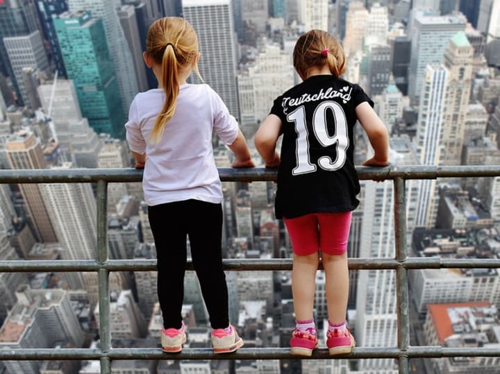 Two Girls Looking Over at a City!