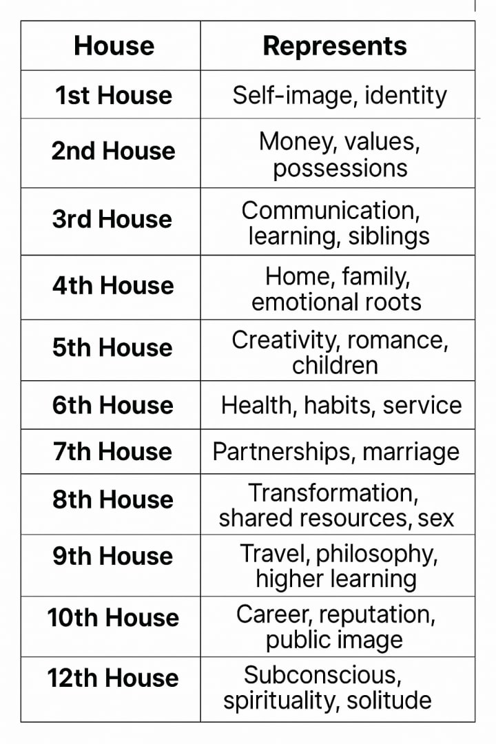 The houses represent the where of astrology — the area of life a planet’s influence shows up in.