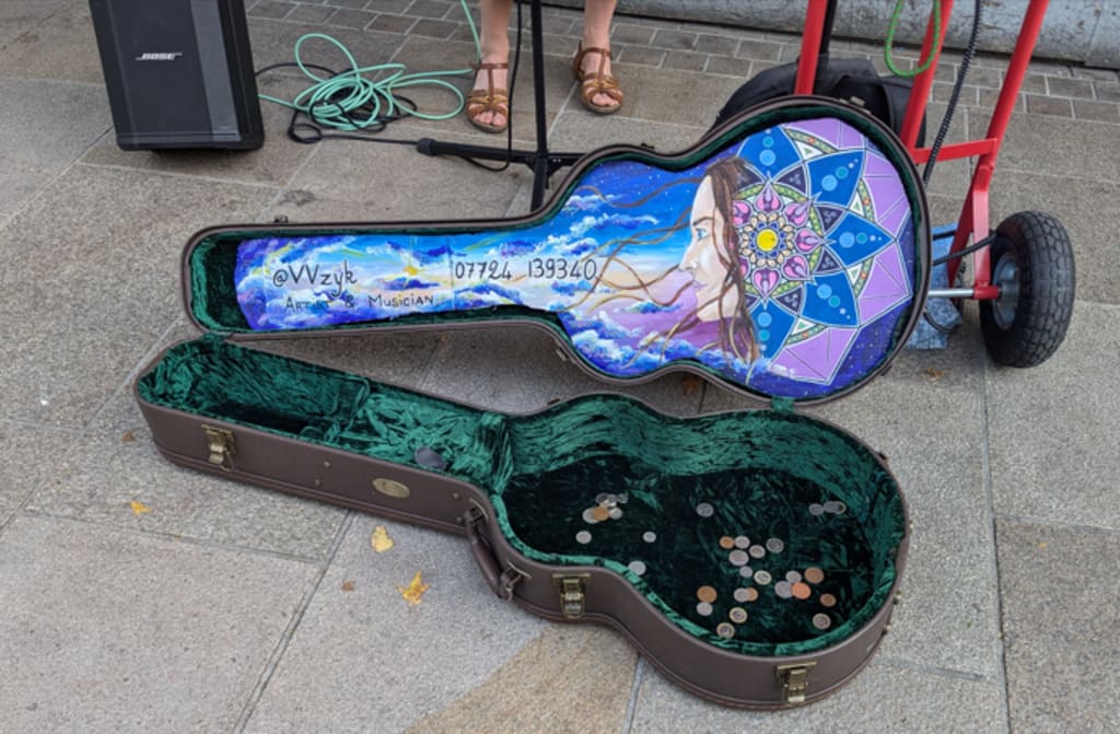 The image I used is the guitar case of VVzyk (with tips) who I saw on Friargate on my last visit to Preston, her music and artwork is brilliant and these are links where you can find more about her: