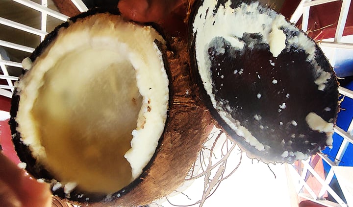 I love eating and cooking with coconuts. This coconut is beautiful on the outside. When I broke it, that’s what it looked like on the inside.