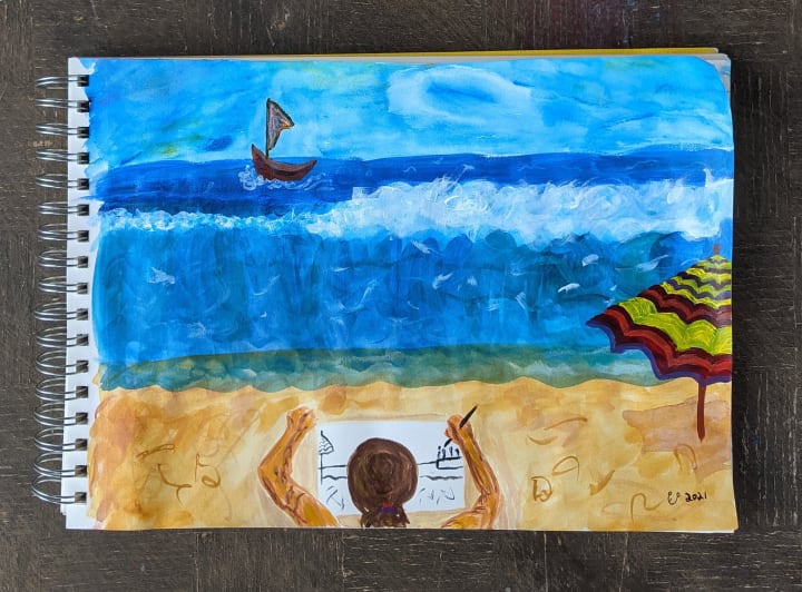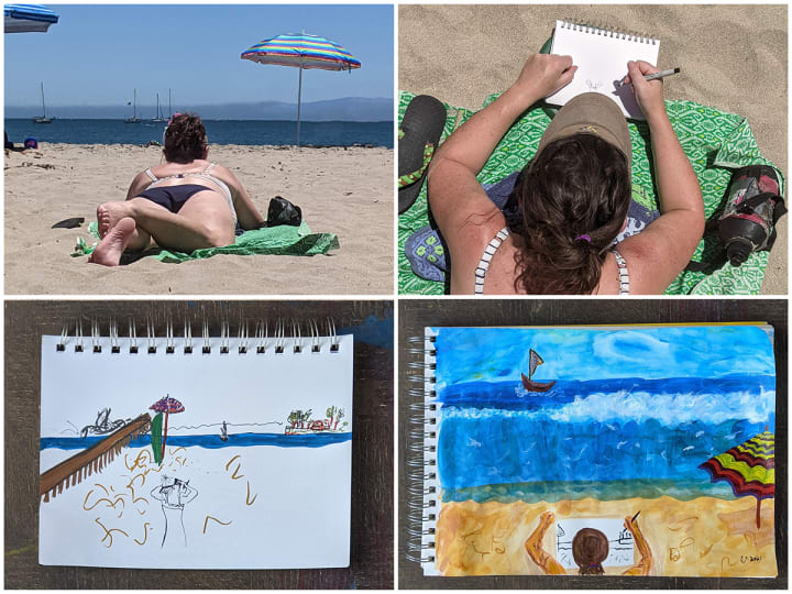 My beach day reflects in my mind. My sketch turns into a painting. My observations into stories. My thoughts into poetry.