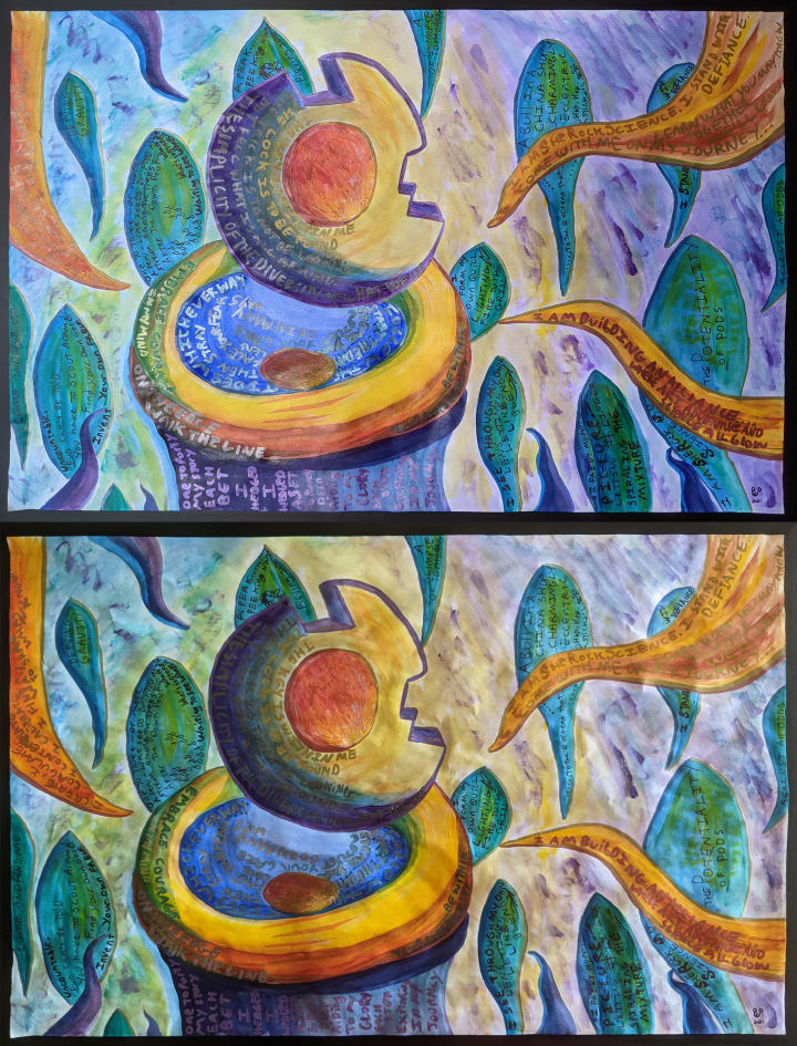Life fulfills me. I overflow with ideas. I offer my creations. I would love to be supported to continue to create what I see in the world around me. Perhaps my work would take the form of written stories, videos, large art pieces, or more tangible prints. My imagination has no limit.