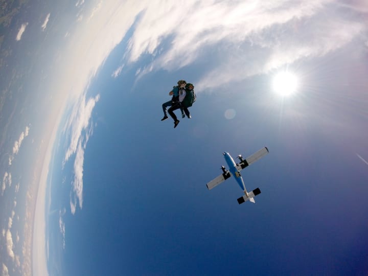 The big day came and all I could do was laugh, smile and giggle. That's my way of staying calm. We walked into the place and they made us sign our life away in waivers that actually said "If you die it's your problem" LOL. Well... it didn't say that in those exact words, but that's how we took it LOL. They strapped us down, gave us a brief, and I mean brief, tutorial and boom, next thing I knew I was on the place taking off. I stood as calm as possible as I looked out the window and the plane went higher and higher into the blue skies. Then, just when we reached the height they needed, they opened the door! Cold wind crashed throughout the entire plane. Then I instantly was nervous (Watch that part in the video LOL)! As I tried to collect my thoughts, I noticed that my best friend was being slightly guided to the open plane door. Then... just like that he was gone! It looked like the hand of God snatched him straight out of the plane. Then... it was my turn. Every step closer to the exit made me more and more calm. I wasn't thinking to myself, "Oh my God I'm going to die, something is going to go wrong," nope! Not once did I think that. I took a deep breath, looked at my instructor who was strapped extremely tight to my back, smiled at my little brother and woosh! Out the plane we went... I could sit here and describe the hundred and one ways on how awesome it was, but it wouldn't grasp any of the sensation. This is the part where you should click and watch the video if you haven't already, and after you're done watching it, book yourself a dive!