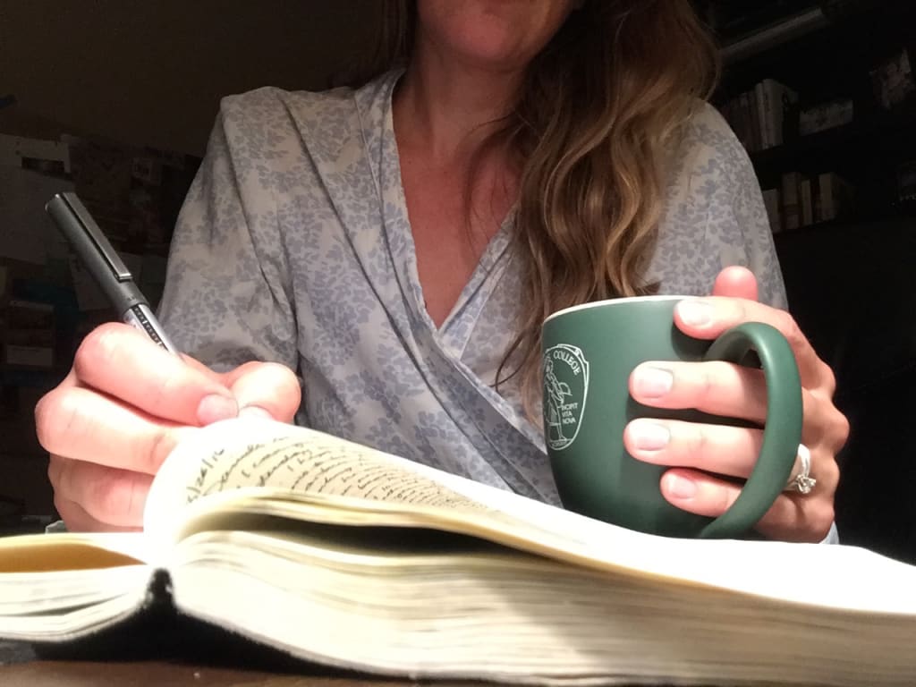 When you wake up super early to write you will be groggy. You will not want to think about anything too much until the coffee kicks in. For me, this meant establishing a routine. I would fill my mug and sit at the table with my coffee and my journal. I would aim to fill one page of the journal with whatever came to mind – seriously anything. It usually took me about half an hour, and I would notice my pen moving faster as the coffee kicked in. Then, I would close the journal, set the mug aside, and attack my writing.