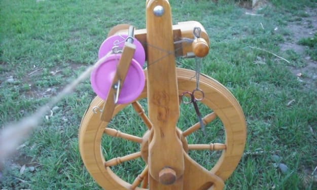 An old New Home sewing machine sits to my left. An elderly pair of scissors sits to its left, waiting to be used for the next project. A cut out scrub top sits draped, onto the plastic chair, waiting for its introduction to the mechanics and magic of the machine to form it into a practical piece of clothing. To my right is a four shaft, six treadle J-Made floor loom. The warp, waiting for the throw of the boat shuttle to produce another line of the rosebud sampler that I am making. It's weft is 8/2 burgundy cotton thread which is shimmering in the sunlight. The kitchen table sports a ten year old UFO of crewel embroidery, a cute picture of a puppy and a kitten. I found it in my stash a couple of weeks ago. I figured that this year it would be finished come hell or high water.