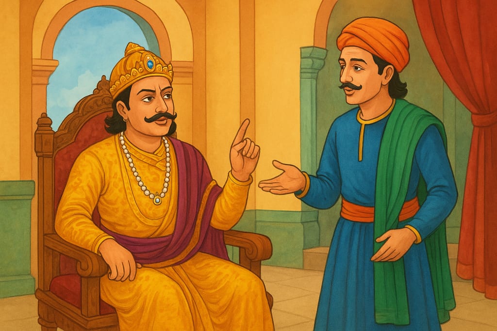 One bright morning in Agra, Emperor Akbar gathered his courtiers in the magnificent hall of his palace. The polished marble gleamed in the sunlight, and the courtiers stood in neat rows, waiting eagerly to hear what the Emperor would say.
