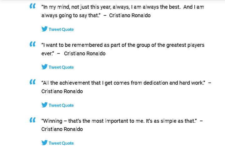 As a true student of success, you know it pays to observe the words uttered by the greats. It pays to understand what they believed. Their words provide insights into the drivers of their success. And according to our research, we’ve observed Cristiano consistently uttering words that confirms the following: