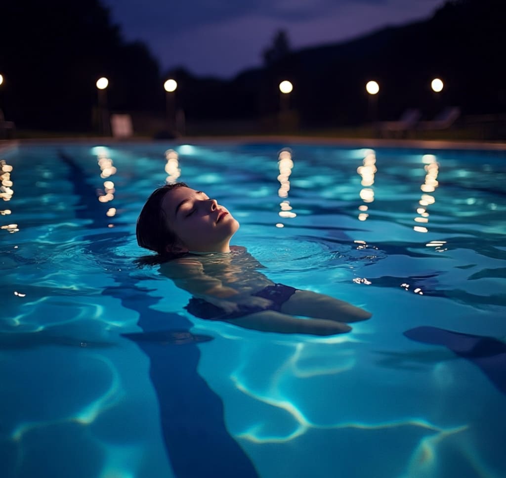 The pool sat silent under the weight of the night. Water shimmered like liquid glass, disturbed only by the occasional ripple from the breeze. It was a place that once sang with laughter, chlorine, and cannonballs. Now it waited—abandoned, hollow, sacred.