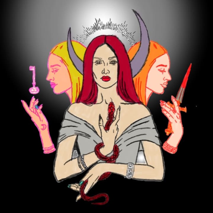 The image that I have created represent all aspect of my anger. Along with being in touch with those drawings. Every time I speak, it is either being taken as a joke or cute or whatever. So, art is the only way I can express. It is something about that pencil and paper. It gets me everytime. It gets me to that place where I want to create anything behind closed doors. Along with being in the part of my own shadows. As you can see in the image, is three women of the character. A woman that has three sides of her. And secretly this attracted me a lot. It reminds me a lot when I am asleep at night, lights off, silently. The anger creeps up when it is time to purge. No, shame, no hiding. It comes out when least expected. Why? Cause it either is drawn to my energy or drawn to my aspects of how I want to be seen.