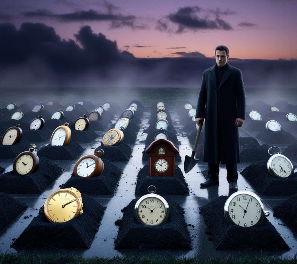 By the end of the month, Edgar had buried seventeen clocks wristwatches, kitchen timers, pocket watches, even cuckoos. Some ticking, some silent. Always with the same quiet ceremony: a hole, a pause, a covering of dirt. No headstone. No explanation. Some say he even whispered something each time before he covered them, though no one ever got close enough to hear.