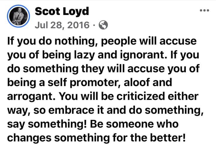 Four years ago, I wrote this post on my facebook page: “”If you do nothing, people will accuse you of being lazy and ignorant. If you do something they will accuse you of being a self promoter, aloof and arrogant. You will be criticized either way, so embrace it and do something, say something! Be someone who makes a difference!” Criticism is the price of admission for doing anything in life. In fact, criticism should be expected if you are alive. But I’ve discovered the most challenging part of criticism isn’t necessarily what we experiencing from others outside of us, but the most difficult criticism is the kind that originates inside of us.We can be so hard on ourselves. I know of people who still struggle to please parents or relatives who are now dead. Yet whatever they attempt to do in life they still hear the negative voice of a parent, or the condemning voice of a well intentioned friend or relative. All of us have experienced criticism from others in our lives, but when their voice becomes internalized and becomes our own, it can become debilitating.