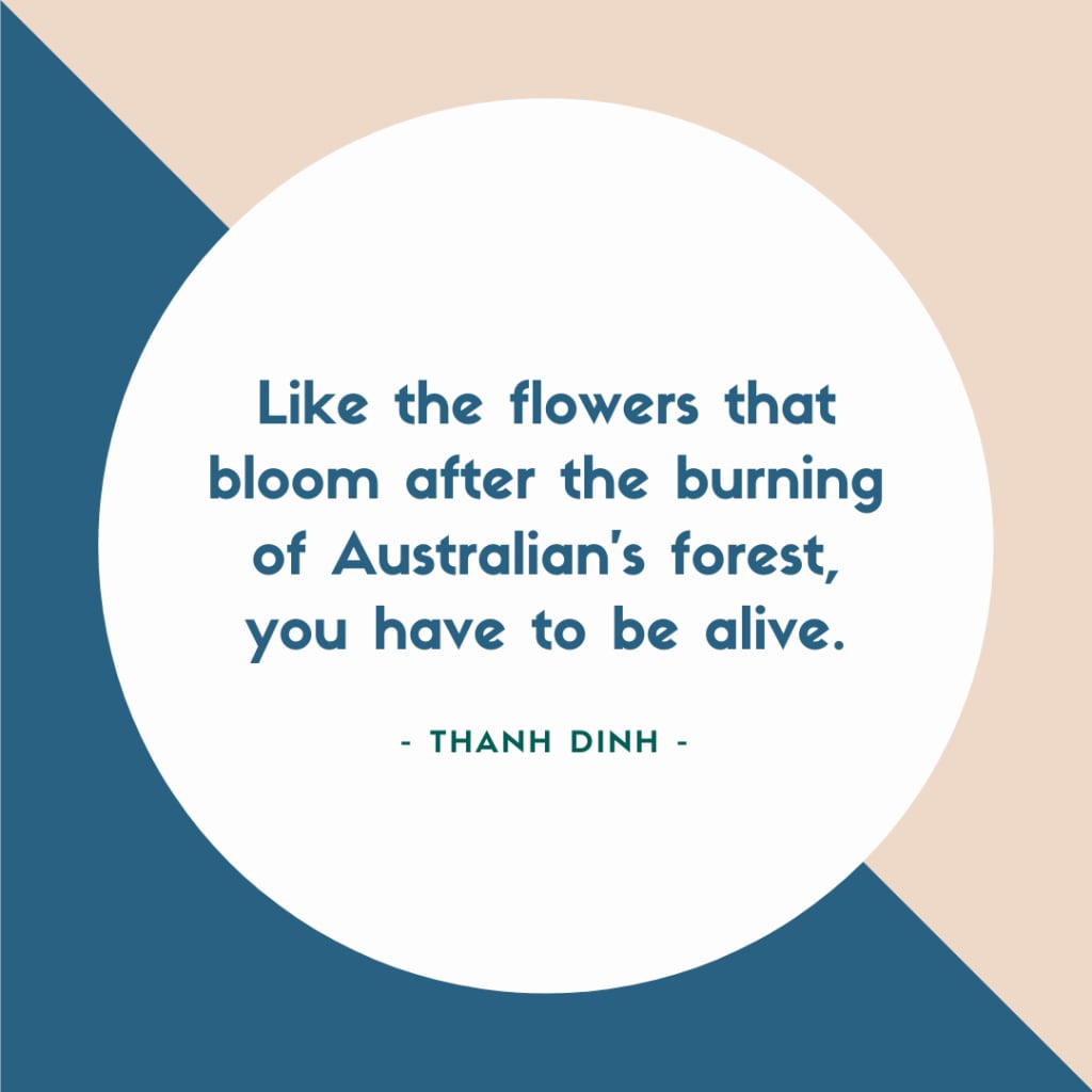 Like the flowers that bloom after the burning of Australia’s forest, for example. You have to be alive. You have to bloom.
