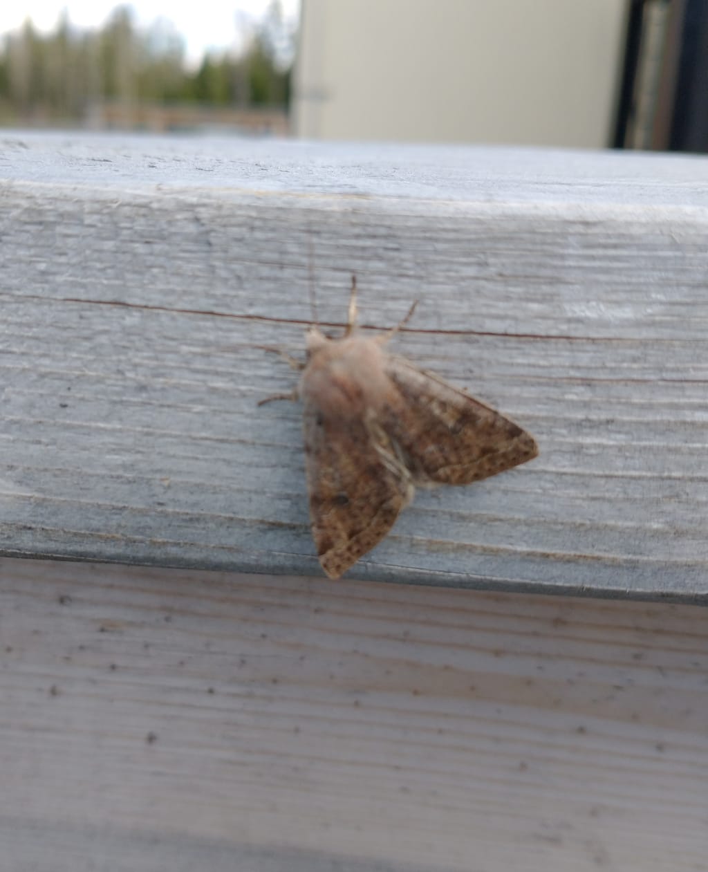 Stepping outside on the way to the garbage bin, a small brown moth greets my sight. This is surprising, as Spring comes late to this area. The tree have not yet burst out with leaves. Nordegg is situated in the foothills of the Canadian Rockies in David Thompson region. Nights are cold. Most mornings the rig matting is coated with frost. Today, which is the early part of May, a steady snowfall is happening outside as I sit in front of my keyboard.