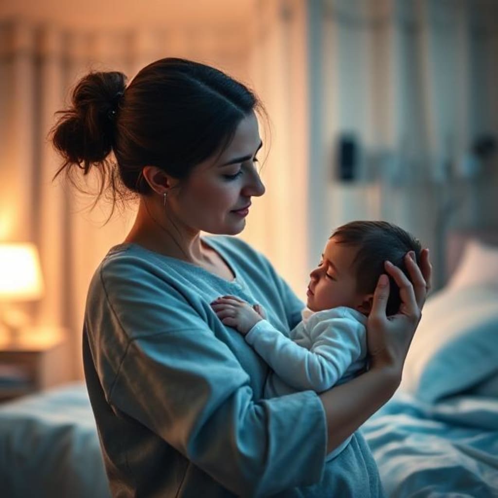 She picked Ayaan up carefully and cradled him in her arms. His feverish body rested against her chest as she whispered soothing words to him. "You’ll be alright, Ayaan. Mommy’s here. Mommy will make sure you're better."