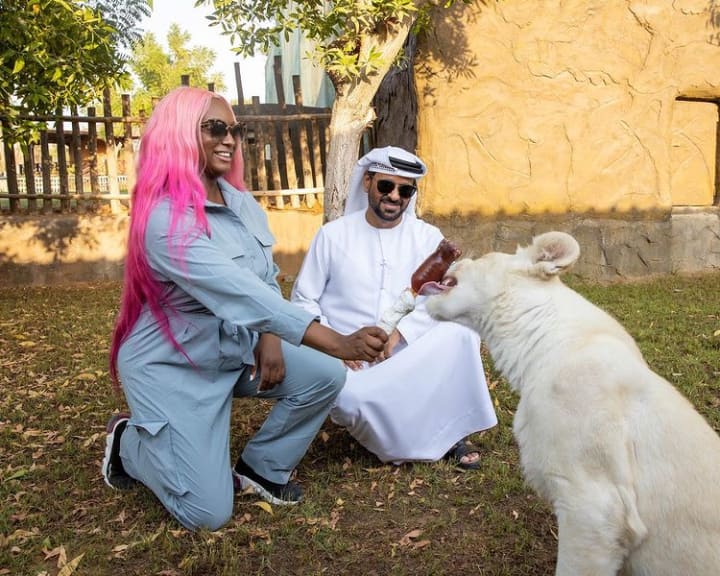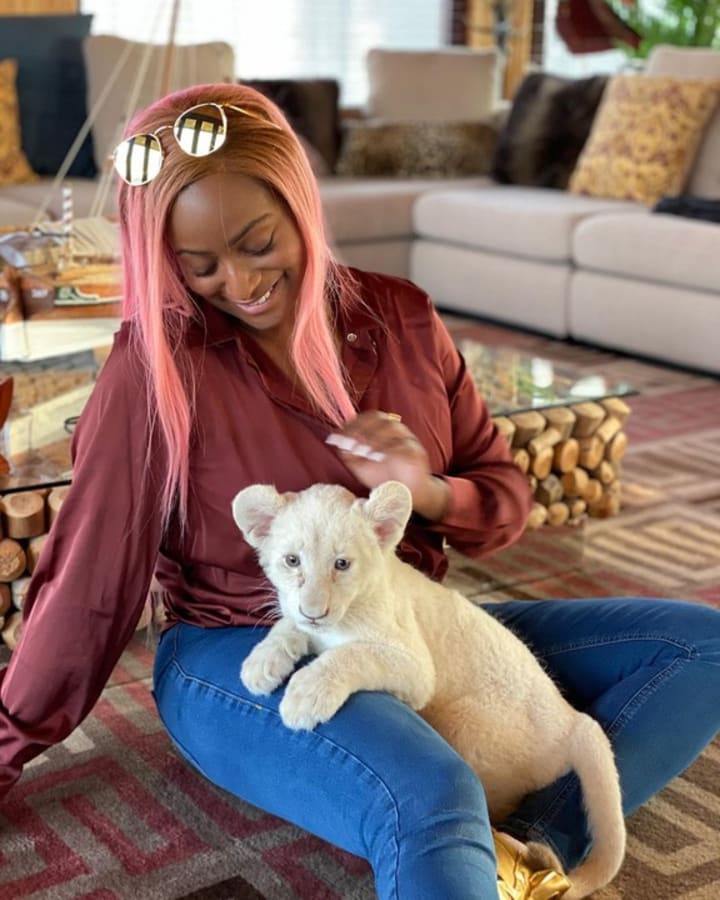 Nigerian superstar DJ, DJ Cuppy surprised fans when she showed off her pet lion also named Cuppy who had been given to her as a gift from the owner of a park in Dubai.