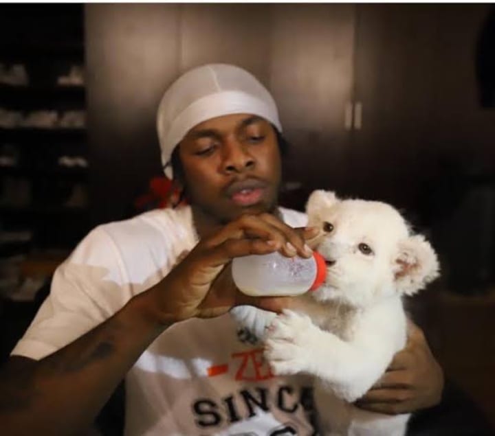 Nigerian singer Runtown surprised fans in 2018 when he showed off his pet lion in a video where he could be seen feeding the lion with a bottle.