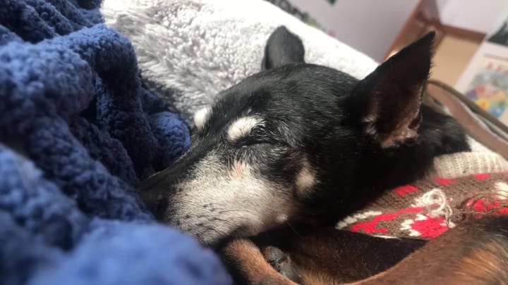 Maple would continue to come back each day and every time, my sister and I pleaded with our parents to keep her. With time, Maple got more comfortable with us and started to stay in our garage. Then, we took her inside one cold winter night. Our dog was curious about her and over time they began to be friends. My parents took Maple to the vet to see if she had a chip or anything and then to get her a checkup so that she could live with us. It wasn't until about a year after we got her that Maple became my best friend. Before this, we got a miniature pinscher that had been rescued from a puppy mill. When I saw her, I knew I needed her. She was so quiet and skittish. My mom gave in when she saw the way the dog acted around me. She was 4 years old when we got her and we named her Sophie. When we brought her home, we took her to the backyard so she could go to the restroom but when she set foot on the grass, she freaked out. She kept picking her paws up really high each time she moved. We came to realize that the poor thing had never been on grass before. It took time for her to become more comfortable with us. Soon, we found that she likes to bark... a lot. But she has gotten a little bit better over the years. Sophie would sleep with me every night for a while. Eventually, though, she took a liking to my younger sister and started hanging out in her room more often. This was okay though because around this time was when I started to realize that I am a cat person.