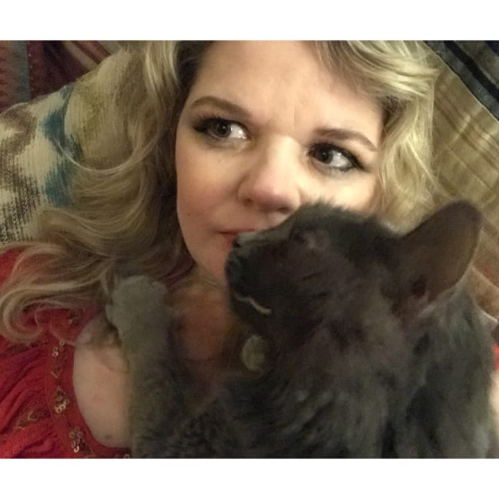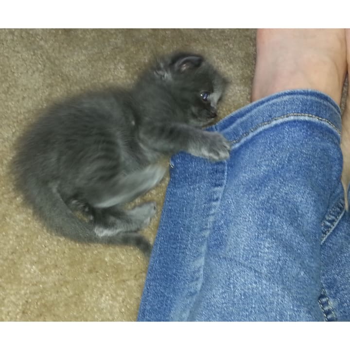 My cat, Bogie, was born under a bougainvillea bush on June 15, 2015. Her mother was a feral cat who moved three of her kittens to a screen porch before becoming exhausted. I was helping with feral cat rescue, checked the yard just in case, and found Bogie all alone in the nest. We bonded when I picked her up. I helped raise her from the day she was born and now she is my Emotional Support Animal.