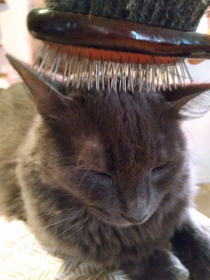 Do cats argue? Well, we did have an argument at four o’clock in the morning. She woke up and decided she wanted to be brushed.