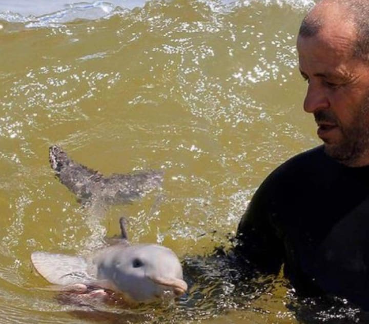 Without the help of humans, this tiny dolphin would have been pitifully swallowed up by the sea.