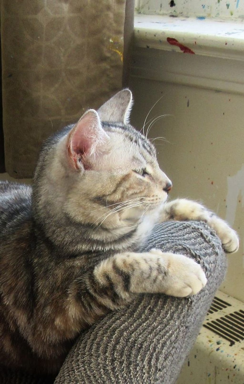 Gypsy doesn't wait for food or treats. She gets extra cuddles before I go out. Don't worry, she lets me know when I'm dismissed.