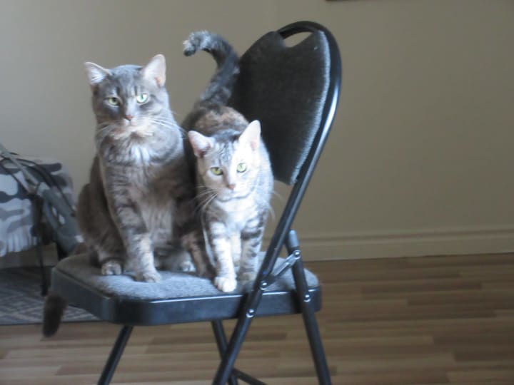 I sat, cup in hand as the cats meowed and rubbed up against my legs. It was past their usual feeding time of 7:00 am. When that didn't produce the desired result, they stared at me. Both of them. A cold, insistent, unwavering type of stare.