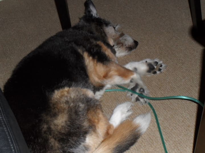 Monkey discovered if she was too tired to follow me, sitting on my oxygen cord was an effective way to make sure I couldn’t go anywhere without her.