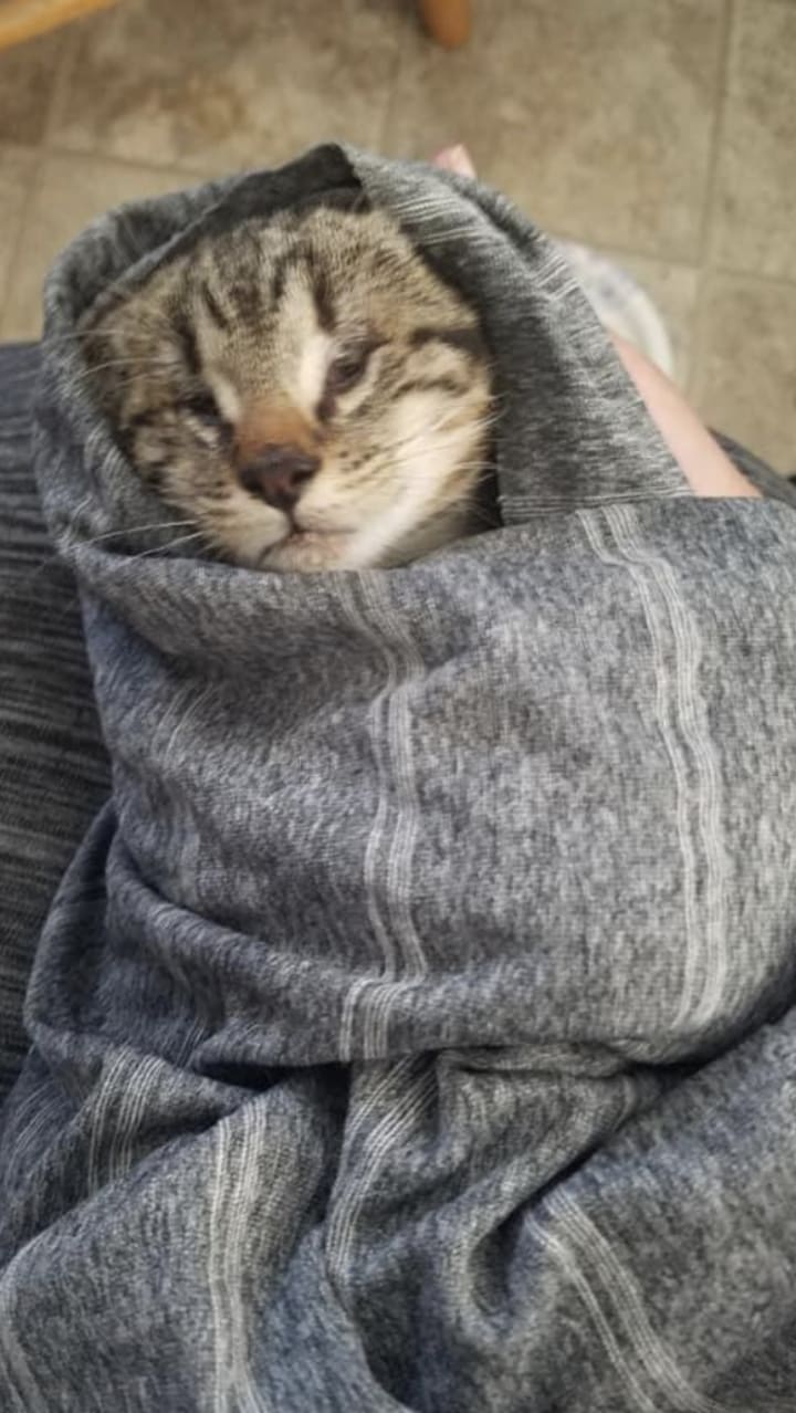 "Hey, do you want a blind cat?" I looked up from getting the mail.