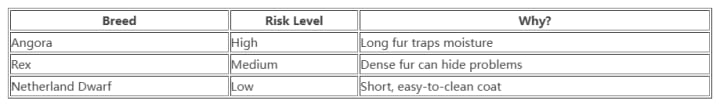 Not every rabbit faces the same level of vulnerability. Certain breeds and coat types require more frequent checks and preventive care: