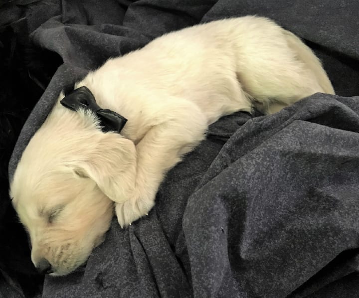 In the next four weeks, in my preparation of the day I finally got to take you home, all I did was spend countless moments staring at your custom made puppy collar with your name sewn on it, and the space where your crate, puppy blanket and toys were, anxiously awaiting your arrival. Luckily, I was able to visit you once a week, and grow our bond stronger. The weekly photo shoots that the breeder did with you and sent me, where you were pictured in a little tuxedo bandana or bow tie, had kept me excited and feel like I had a reason to stay strong and keep going. The love for you only grew stronger and stronger.