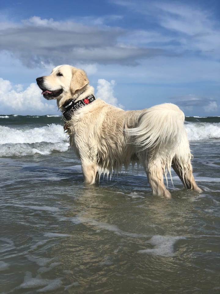 Having been severely bullied my whole school career for as long as I can remember, and having been through severe emotional abuse and other traumas for many years leading to developing C-PTSD, I never had or felt strength this much before I met you. I have had you to help me through my panic attacks, and was able to have you by my side 24/7, and I never thought of how much I would benefit from you before I had my first panic attack with you present. You responded like an Angel. You are truly a blessing. You made me feel so safe and calmed me down so quick, and continued to lay on my legs and lick my face until I was ok to get up on my own, and not be of harm to myself. The light I originally had as a young child was dimmed or even gone for so long, and when I finally was able to call you mine, I gained almost all of that light back.