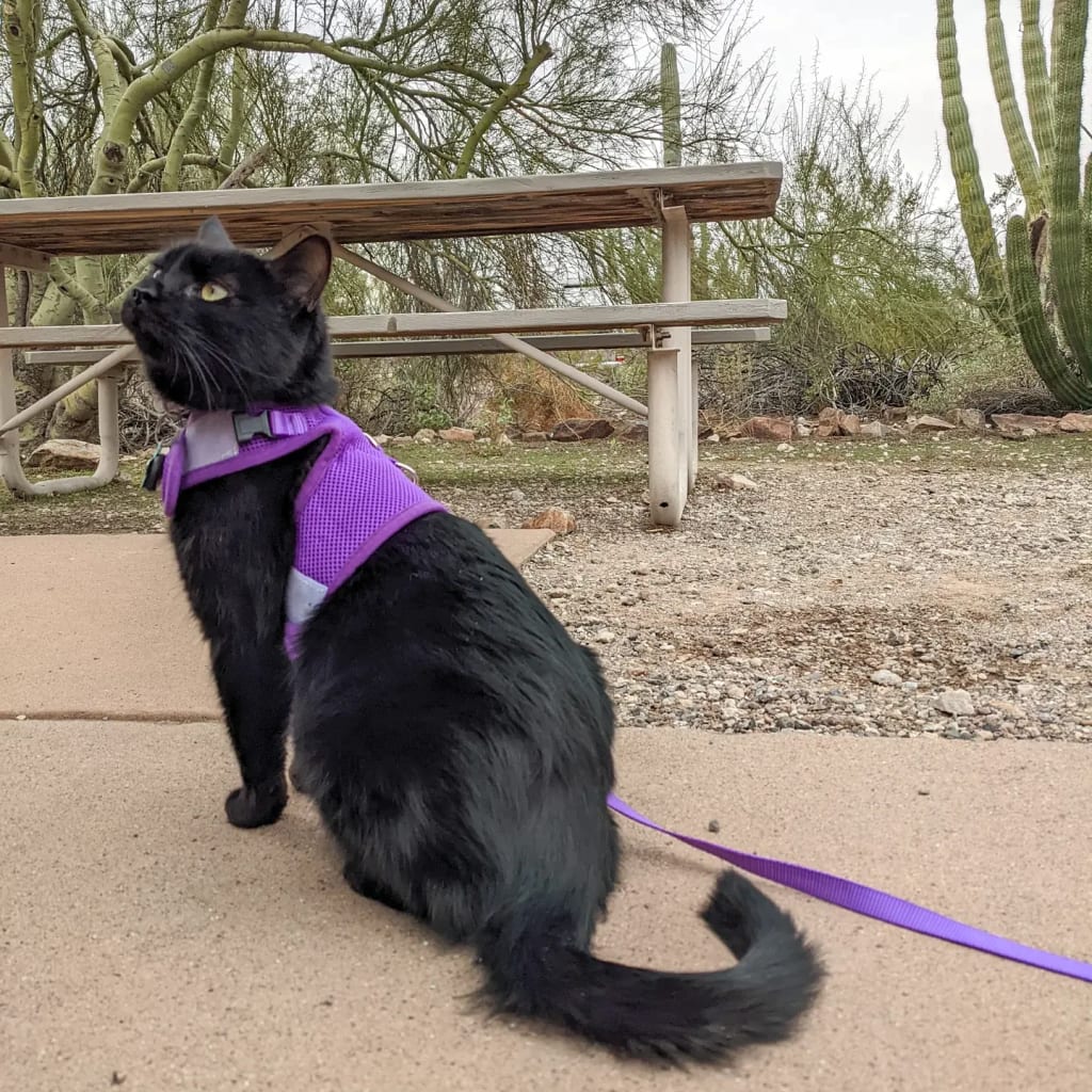 Eventually, she gave up for a few years and accepted that she could never get me to walk on a leash. Then, we hit the road full-time and she realized that that's not the only reason to put a leash or harness on your feline friend.