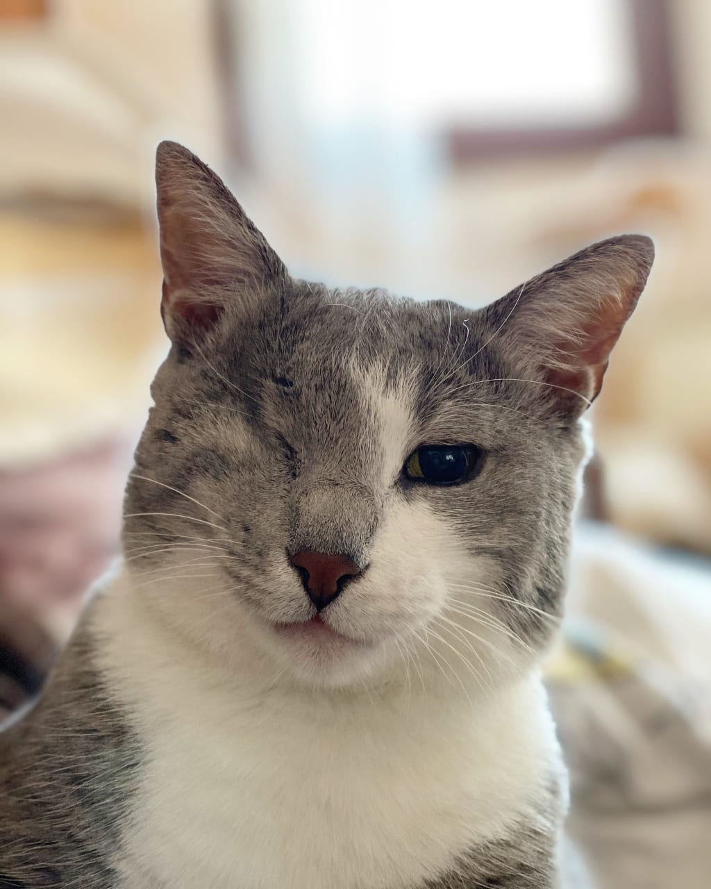 Her health is not the best and it was devastating to learn that she has adenocarcinoma. Her eye wasn't injured, it was a growing tumor. Three years ago she had to have surgery to remove her eye, it was hurting her so badly she couldn't even play anymore. Even though it was tough learning that and waiting for our vet to call us and say that the surgery went well, I'm so glad we did it because she's a happy and playful cat now.