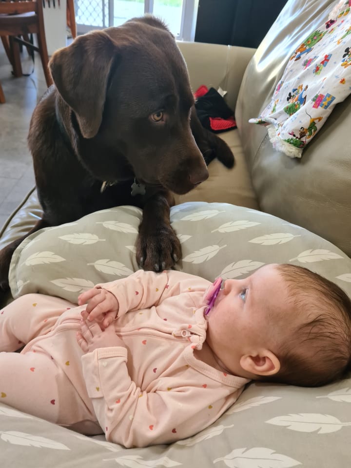 Watching my fur son and my young daughter bond has been the most magical phenomena of my life. I have never witnessed such an intense bond of love. They truly do communicate in ways that we adults can not comprehend. Boof has soo much love, that even though he is 100% Zoe's dog now, he still loves his human mum. I still enjoy morning snuggles on the lounge. I still get the privilege of him following me up into my office whilst he destroys a toilet roll pinched from the bathroom. I still get the burst of love when he snuggles at my feet whilst I type away at the keyboard.