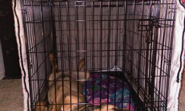 When we first adopted Dewey, there was a bit of sibling rivalry that occurred between the two. Dewey was extremely curious about Luna and wanted to constantly know what she was doing. Every sound she made had him checking on her to see what was happening. He also got very jealous when I would lock him in his crate so she could have some time out of her cage. He would whine under his breath, and grumble loudly if he could see or hear me playing with her.