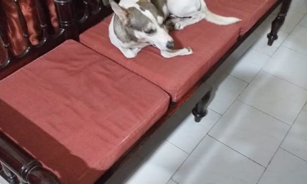 He (actually she), has a lot of boyfriends. Mom spotted him running in the midst of a group of dogs, totally carefree. He too saw mom and from the end of the street, he came bowing his head to one side and came and fell at mom's feet. He came showing his left cheek, saying slap me. But as he came forward, he put his paw forward for a shake hand.