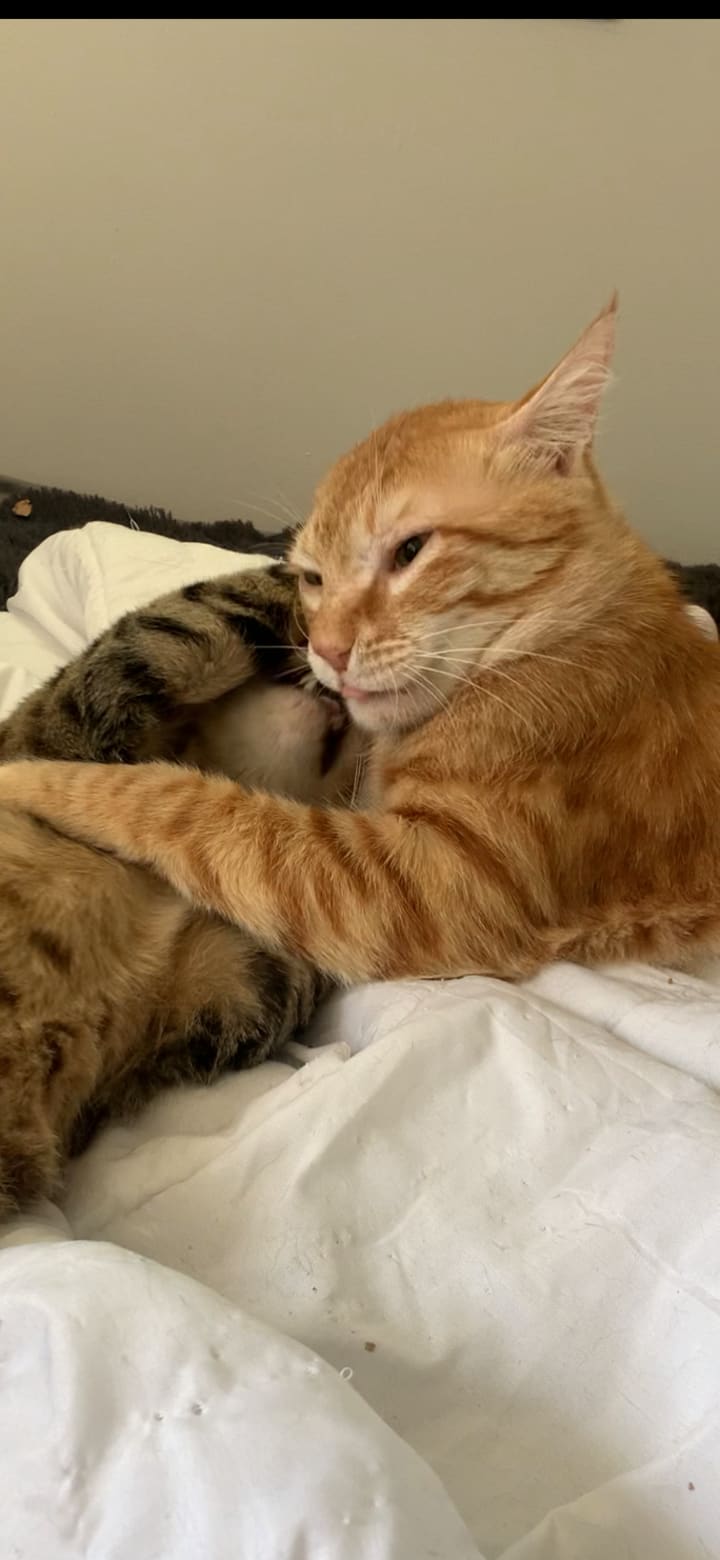 Because I stayed in Afghanistan until November 2020, Nemesis is now closer to my sister than to me. Which is fine. I only saved his life. But we both know everything about him, like how he hates when we shower. We’re not sure why, maybe he thinks we’re drowning, but he screams and tries to pull us out if we get too close to the shower curtain. Our staircase is his Thunderdome; if he’s there, anything that moves is prey. When he shows his belly, that not him begging for pets, that’s a claw trap. And, when he’s feeling lively enough, he will meow back at us in a way that feels awfully close to a real conversation.