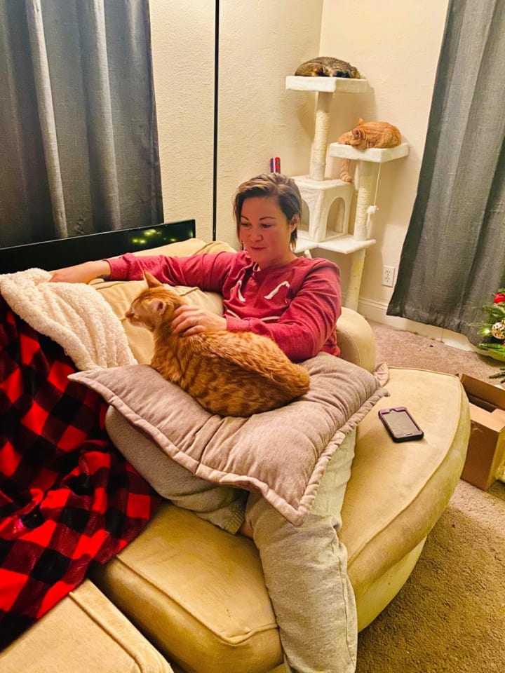 We bought our home in January 2020. It has tons of room for all our cats to run and play with plenty of cat beds for them to nap on in the sun. They sit in the sunroom watching the birds and the herds of deer who wander around our neighborhood. My sister is two years away from her bachelor's with plans to pursue a masters at a school in Florida. I found two more strays in Afghanistan before I left: a brown and black striped cat named Franccc and a certain powerlifting former Marine who is horribly allergic to cats but still loves all of mine, though R2 and Luke are his favorites.