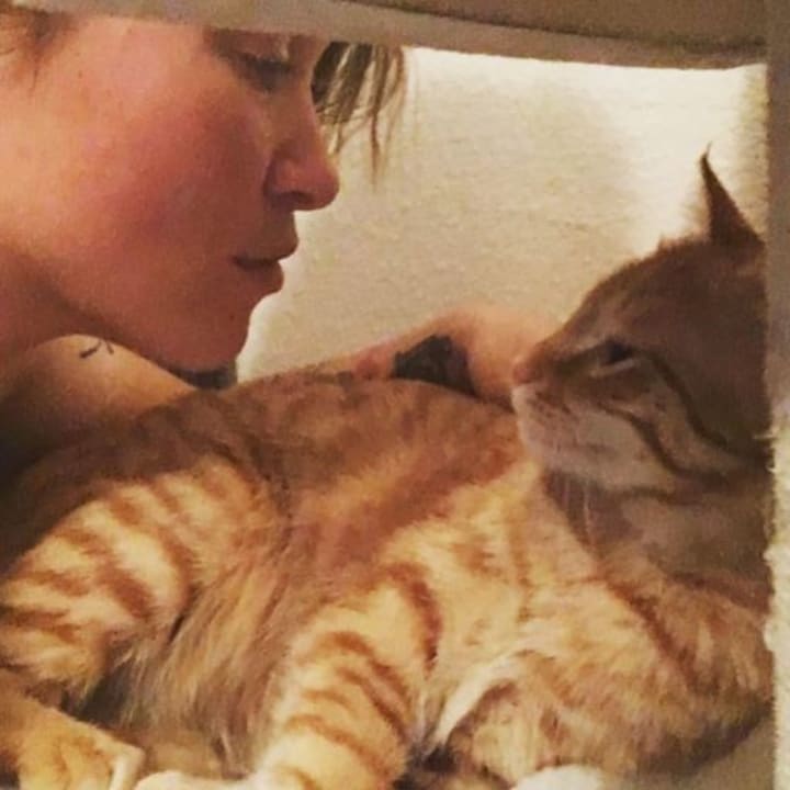 Nemesis looks like a normal cat. With his vibrant green eyes, orange and white striped fur and chunky belly, he looks like a cat who has been doted on his entire life and slept only on the softest of cat beds. Until you pet him, that is. His fur feels short and coarse, and, if you feel along his right flank, you’ll feel a pellet from a bb gun stuck just under his skin. There are scars on his face you can see just beneath his fur and on the backs of his ears. And if you look into his eyes, you’ll see something different there, something a little too wise to see in a cat’s eyes.